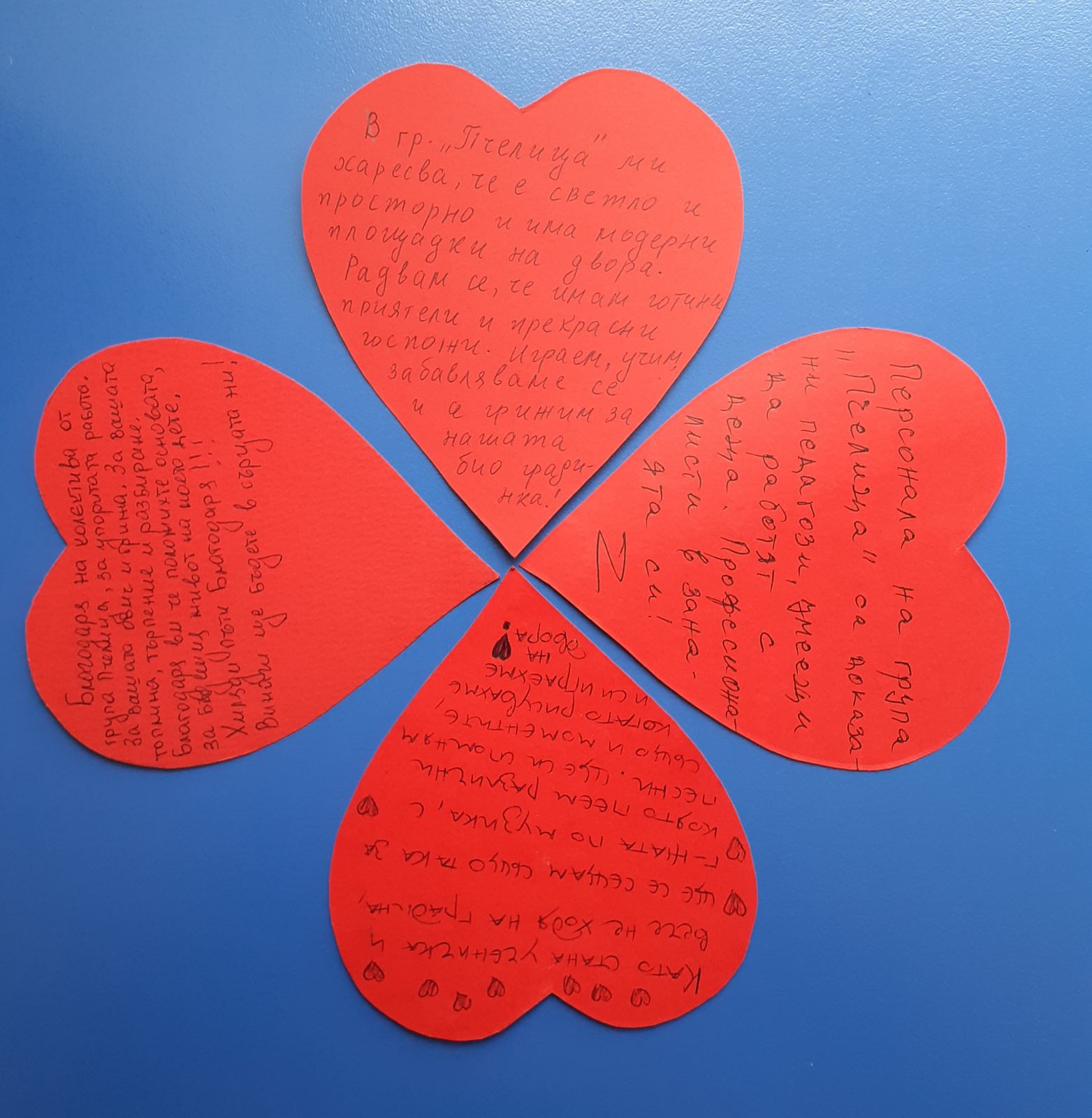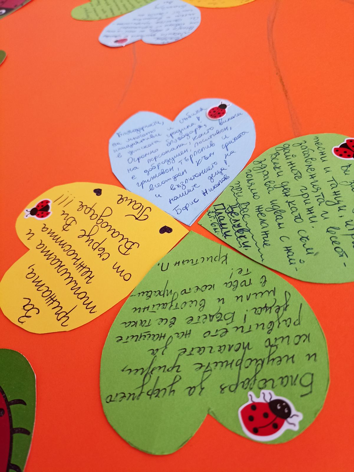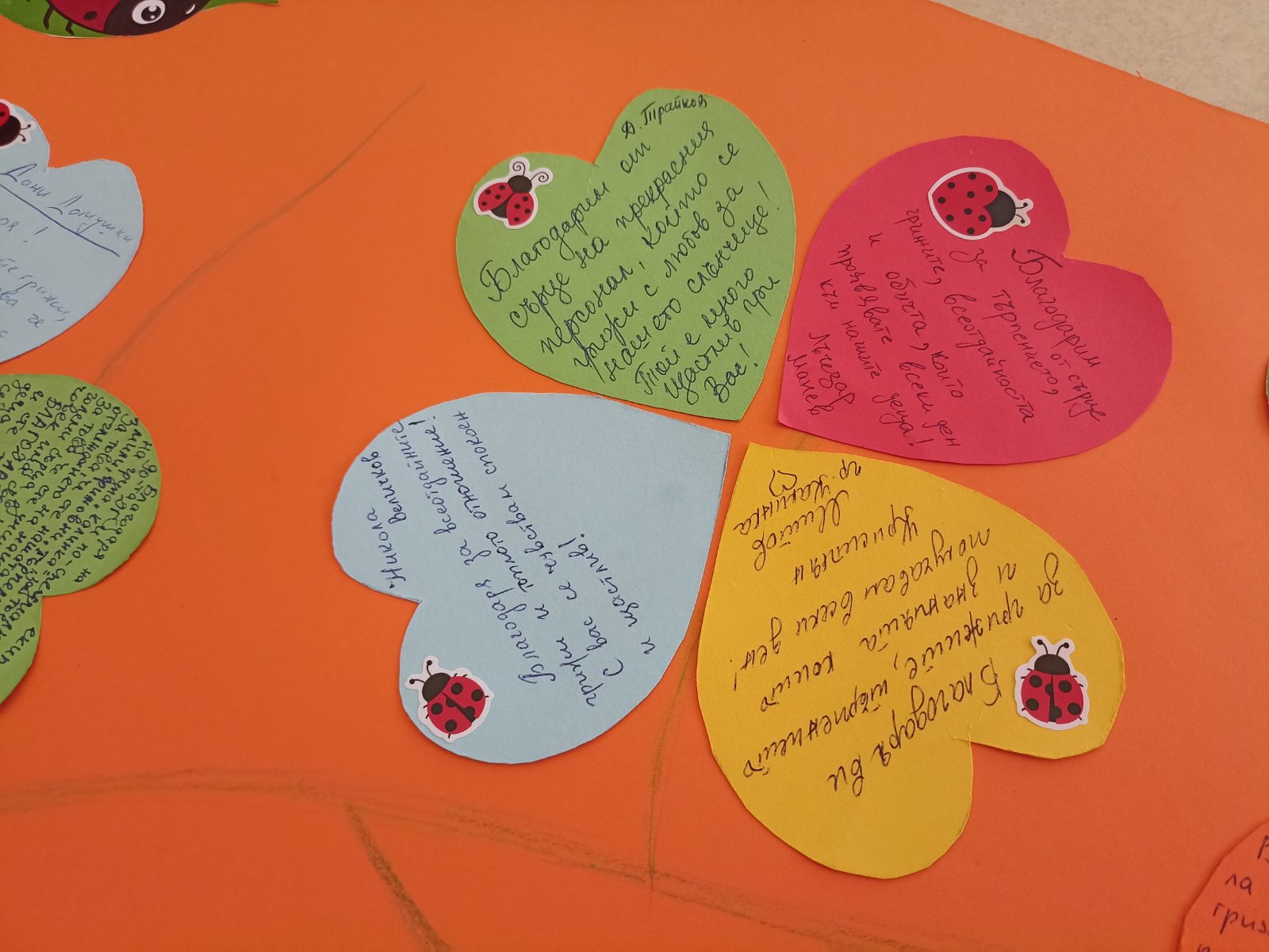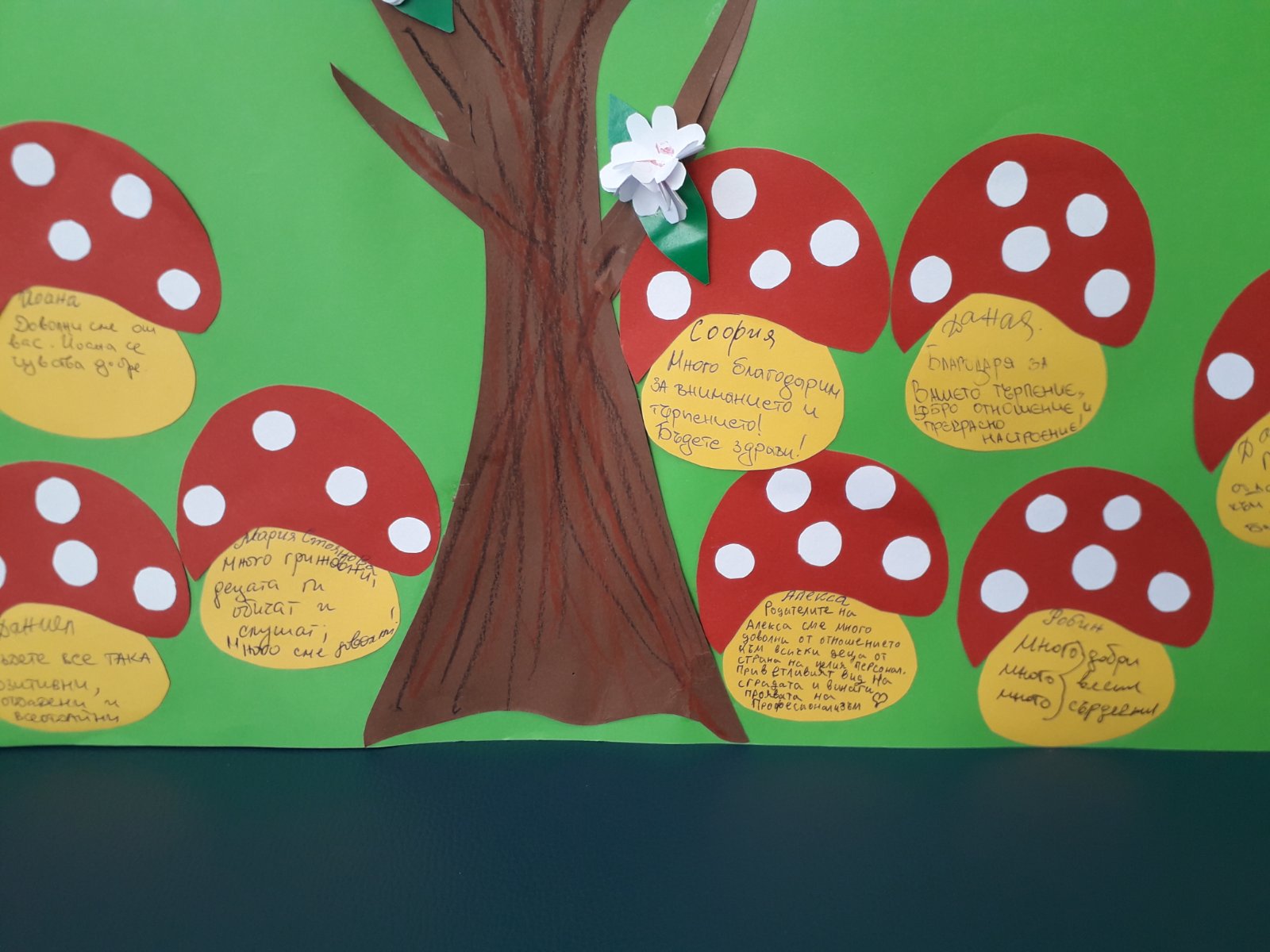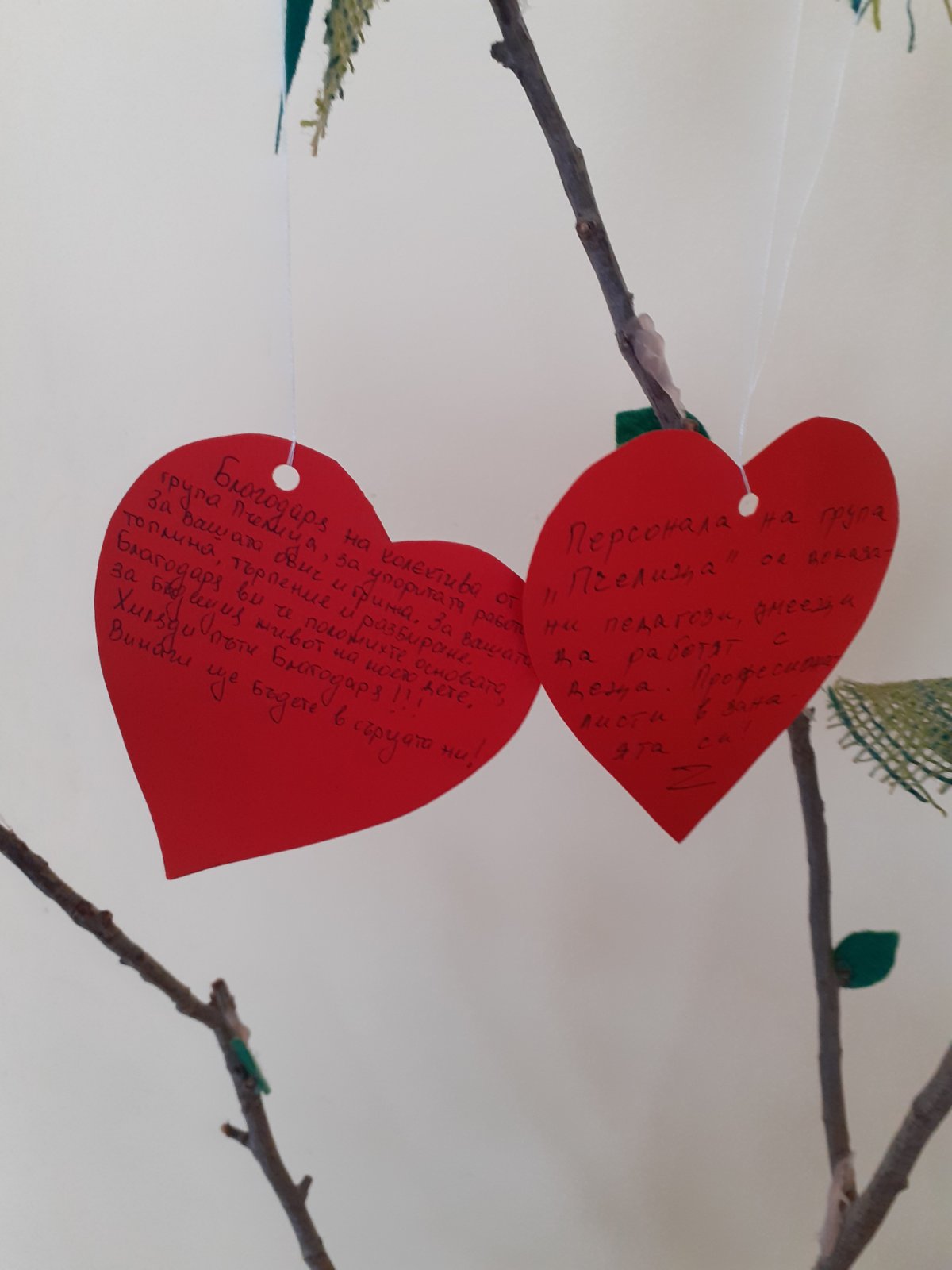 На красиво оформените творения могат да се прочетат сърдечни думи на благодарност и прекрасни пожелания. Родителите изказват многократно специални благодарности и на директора на ДГ№90 „Веса Паспалеева“- г-жа Катя Йорданова, за винаги топлото отношение към тях и техните деца, за отзивчивостта й и бързото решаване на всеки възникнал казус.