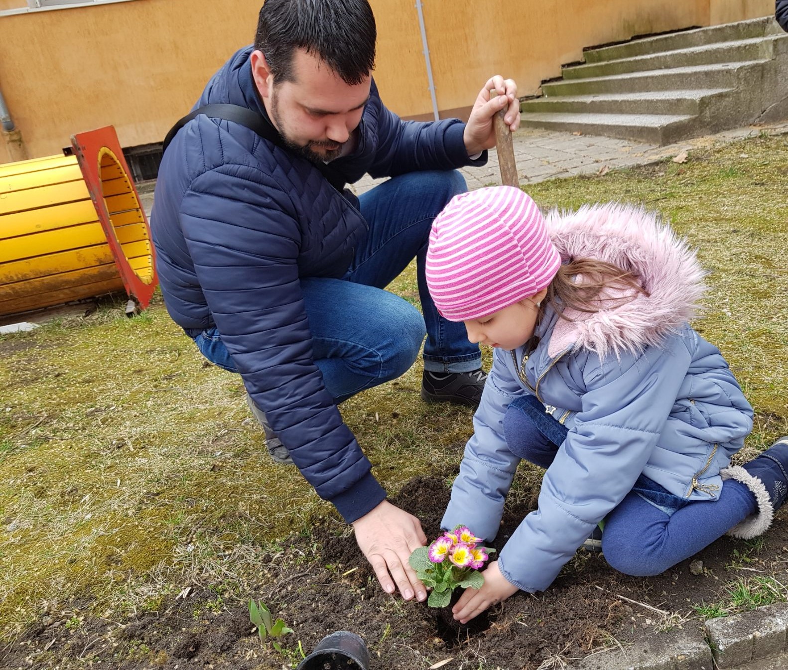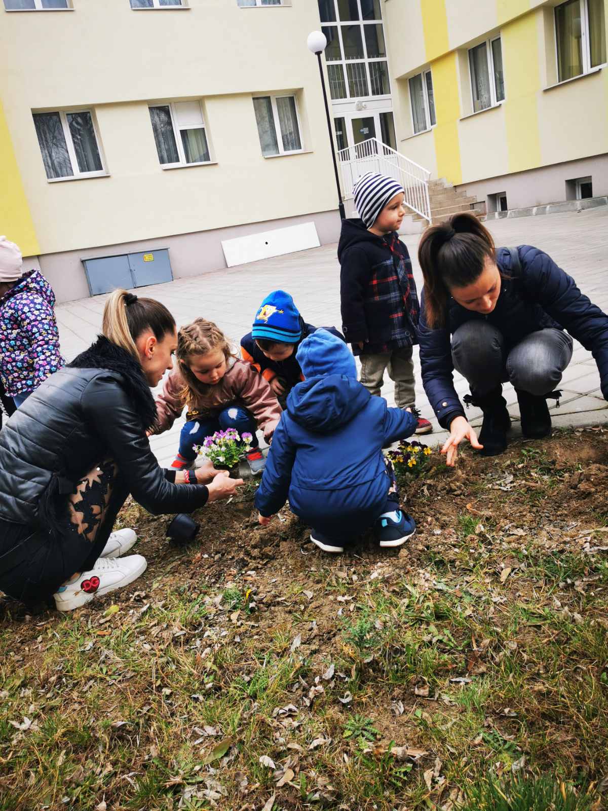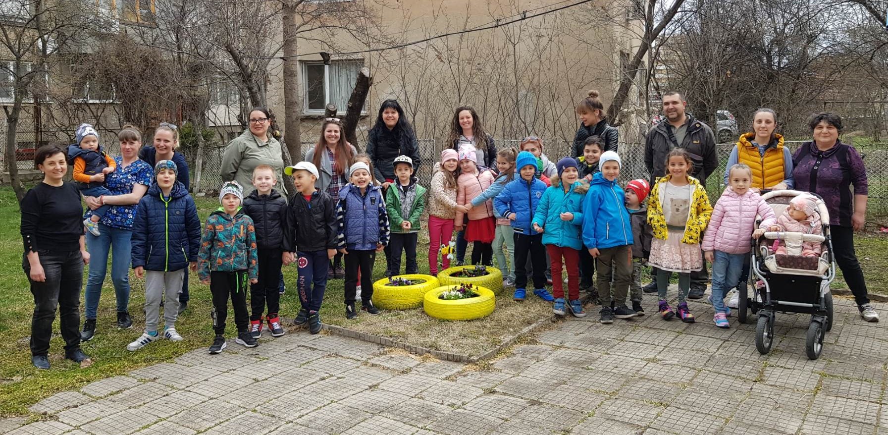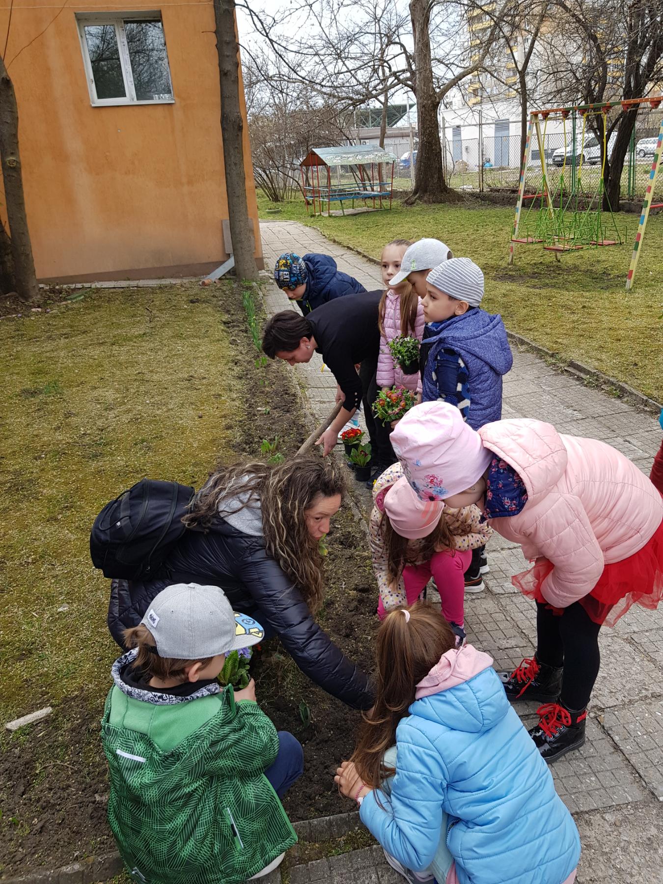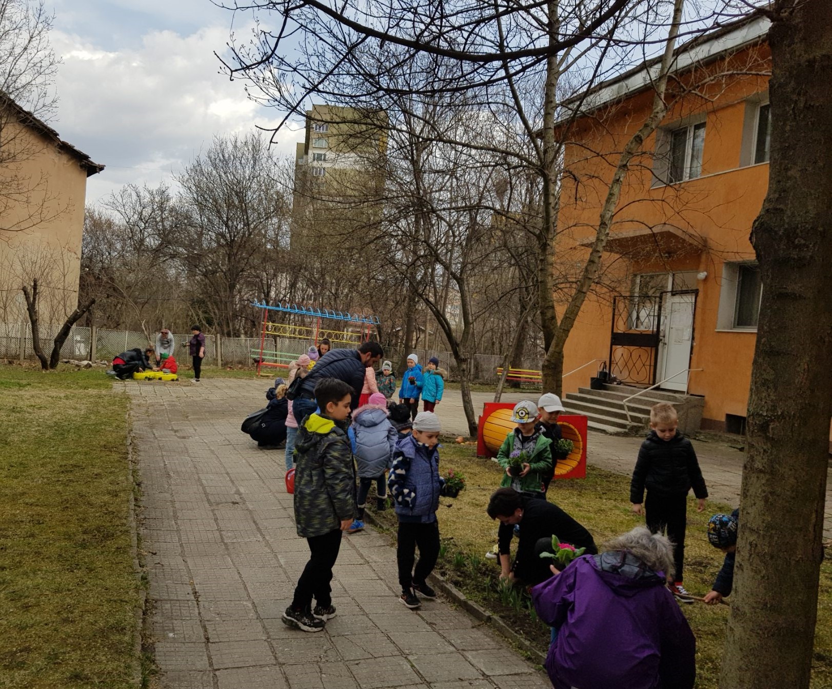 Родителите от градинските групи „Детелина“, „Щурче“ , „Бонбон“ и яслена група „Гъбка“ от филиал „Бял люляк“,  използваха топлия и слънчев пролетен ден, за да засадят в двора на детската градина цветя и растения, които да радват всички с пъстротата и красотата си.