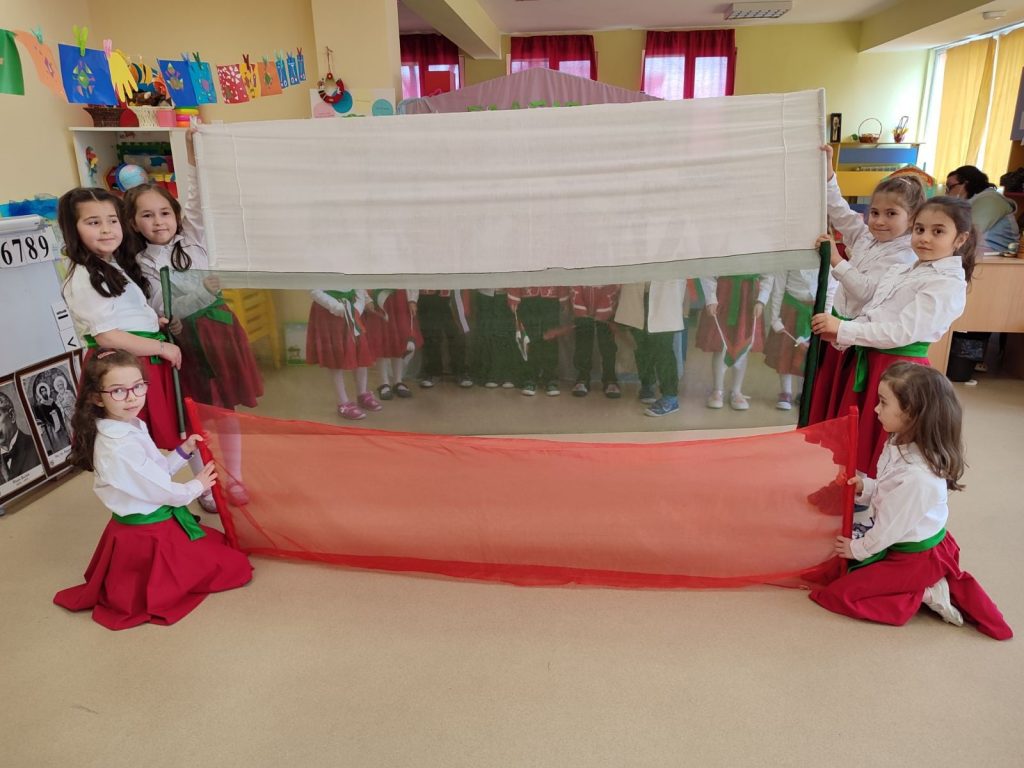 На 02.03.2022г. в ДГ№90 „Веса Паспалеева“ се проведе „Тържество за България“ на подготвителна група „Дъга“ по случай Националния празник на България – 3-ти март. Децата показаха обичта, гордостта и почитта си към Родината и героите, дали живота си за нейното освобождение, с емоционално изпълнени стихове и патриотични песни.