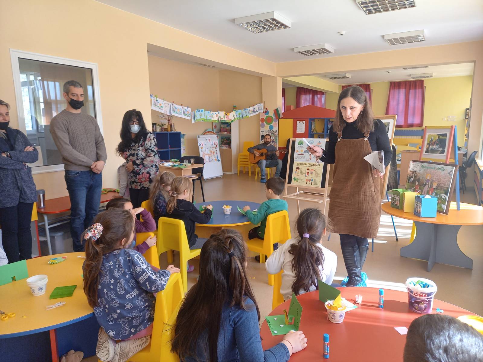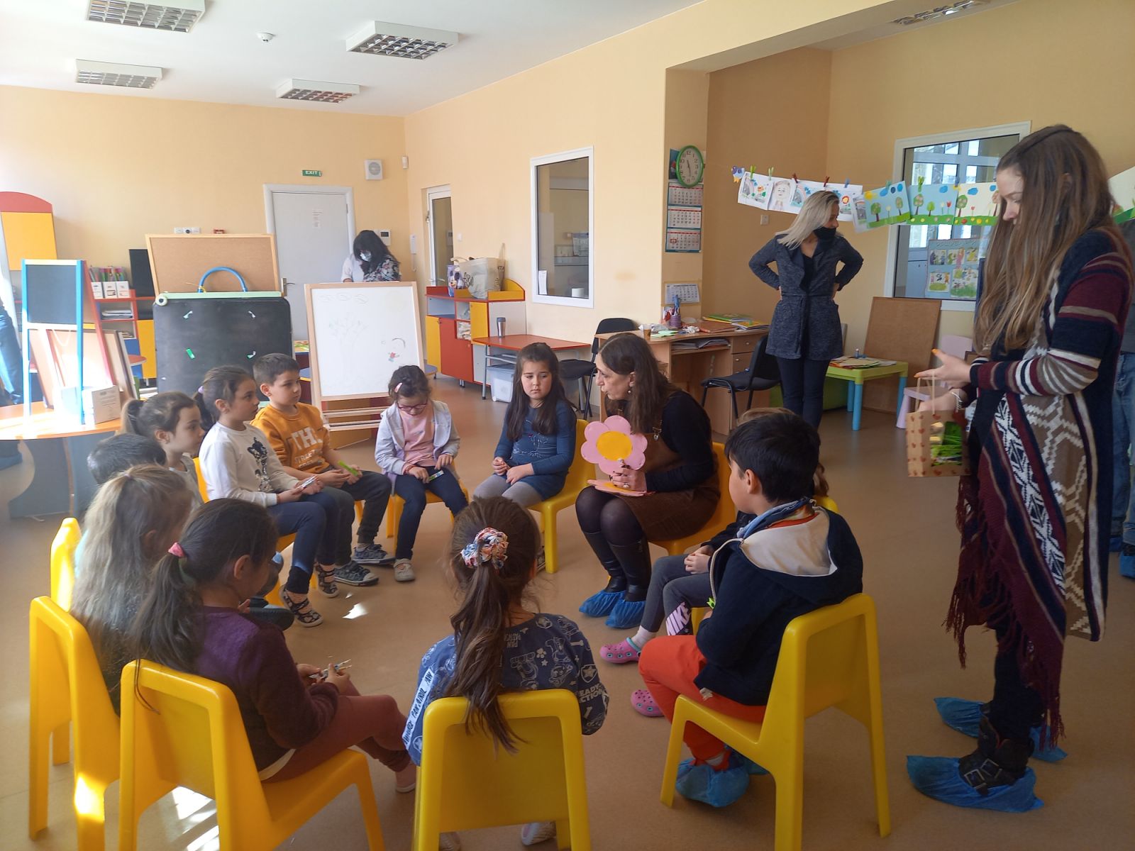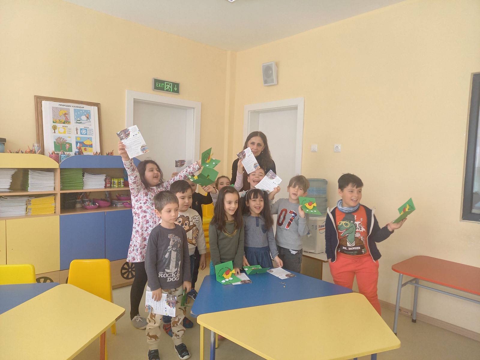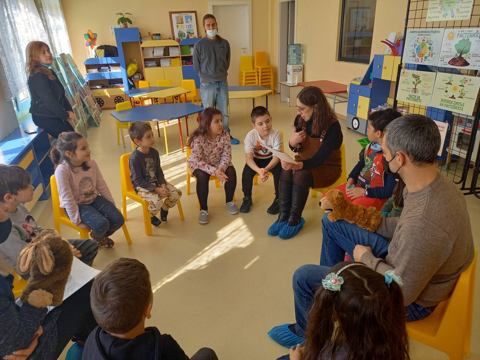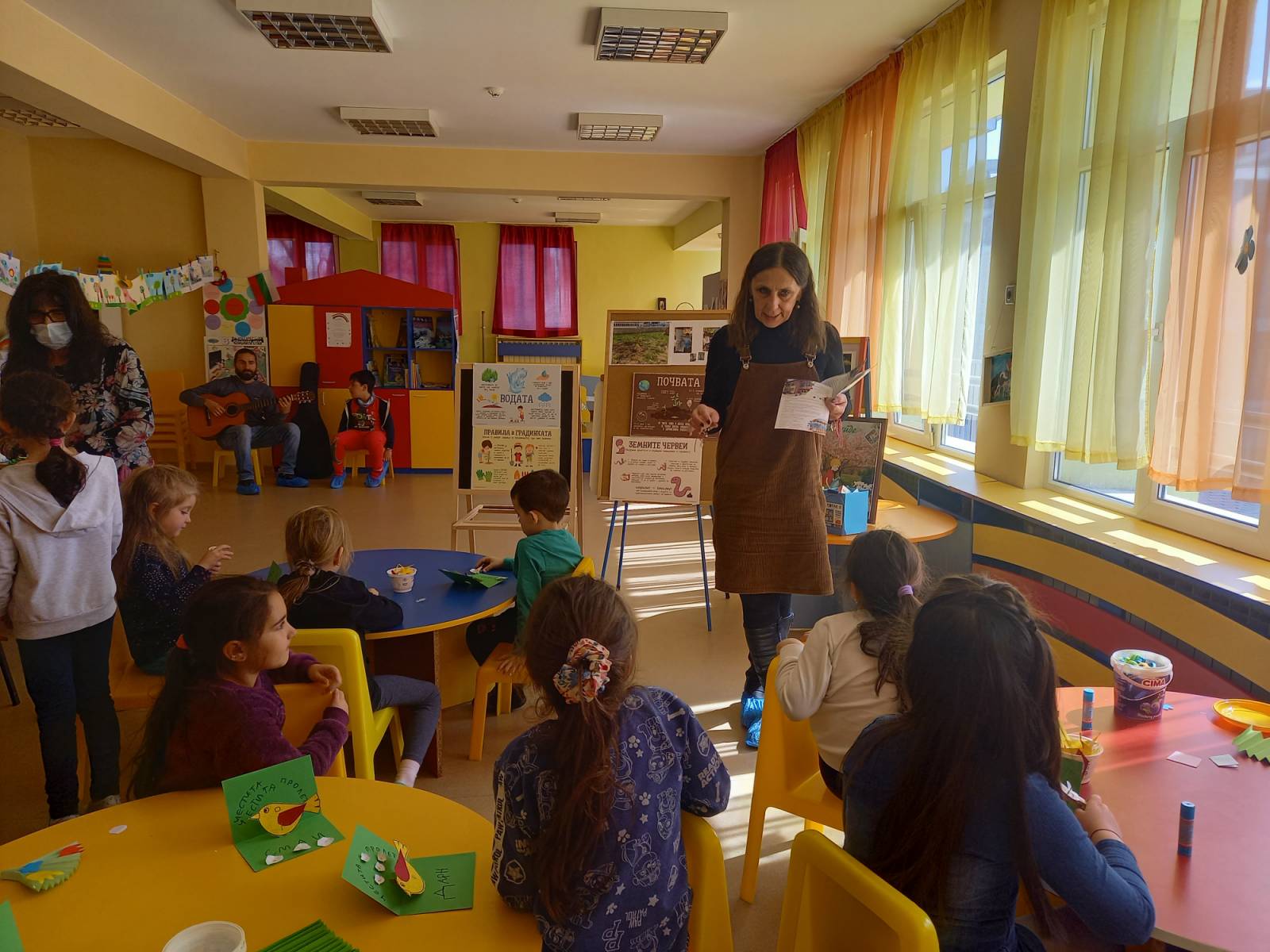 Гостите изненадаха децата с интересни опознавателни игри, прочетоха „Горска приказка“, в която героите Зайко и Мечо оживяха като куклени персонажи и пяха заедно песен за пролетта.